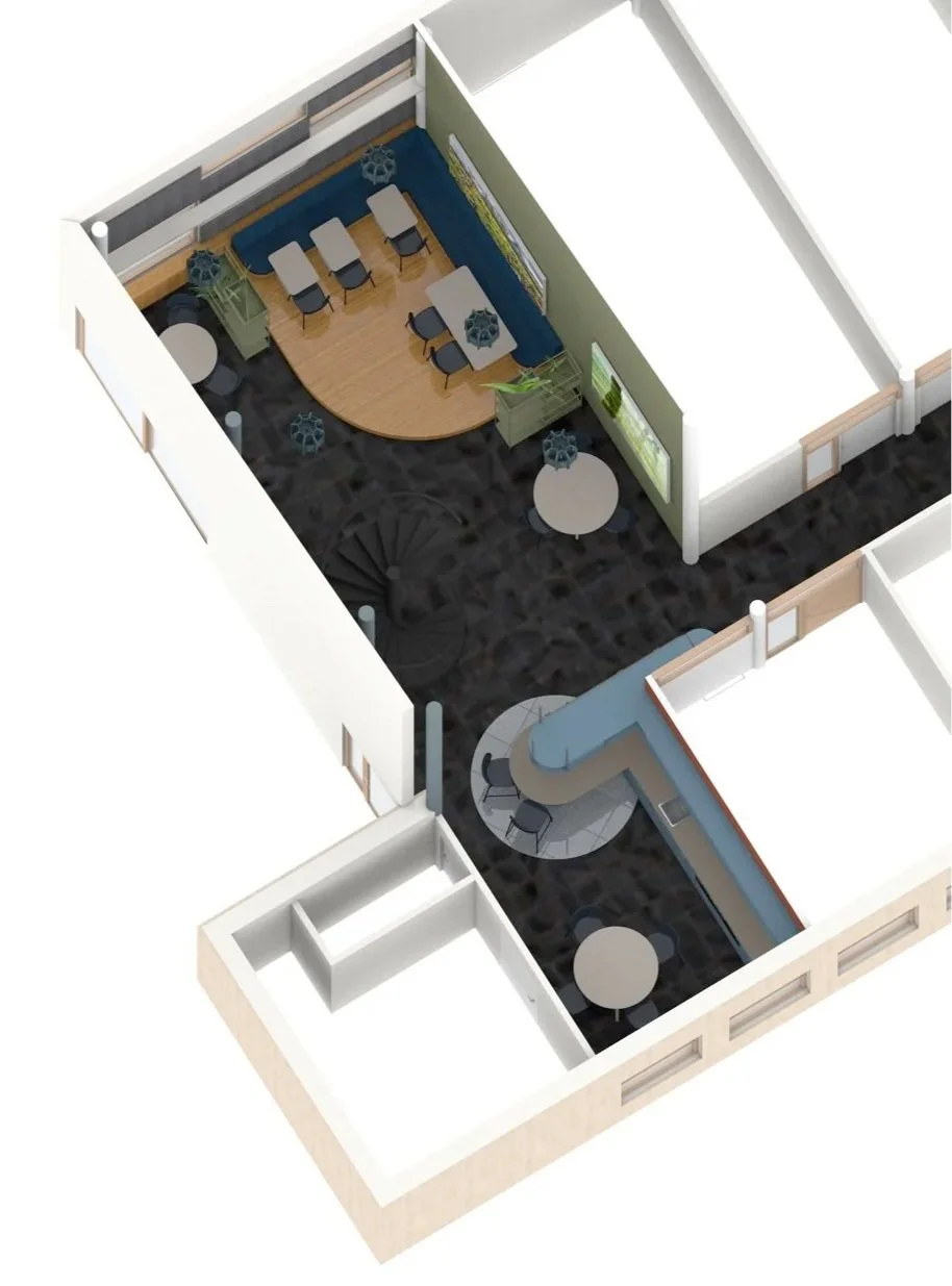 In opdracht van BESPARK, huisvestingvisie en ontwerptraject voor renovatie en aanbouw interieur hoofdkantoor woningbouwvereniging Vecht & Omstreken. In samenwerking met de k3 architecten.